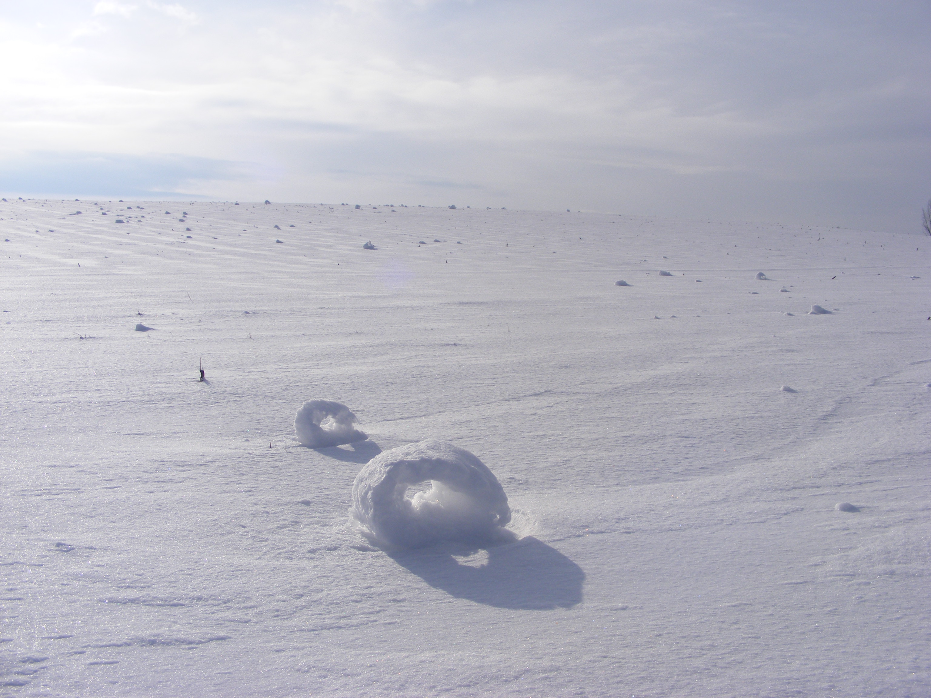 L'être humain n’en est pas le pâtissier. Alors, est-ce que c’est E.T qui l’a cuisiné ? Non, notre ami venu d'ailleurs n’est pas le créateur de ces formes étranges . En effet ce sont des rouleaux de neige. Comme l’Américain est “ plus stylé” on va utiliser son appellation américaine, les snow rollers. Ces formations neigeuses présentes en de rares occasions dans ces régions très froides du globe naissent dans des conditions météorologiques très spéciales.
